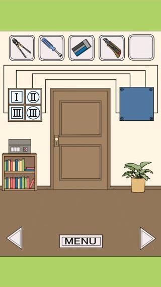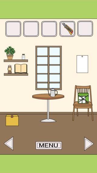 左に移動して、左下のダンボールに「カッター」を使って「消しゴム」を入手。