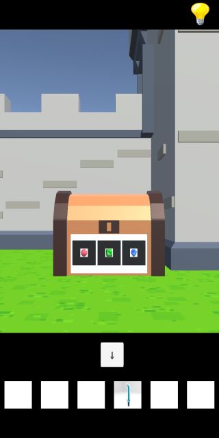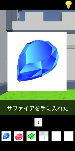 戻って左奥の箱を拡大して、「ルビー」「エメラルド」「サファイア」をはめる。