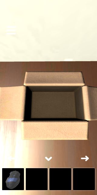 右下のダンボール箱を拡大して、「カッター」で開ける。