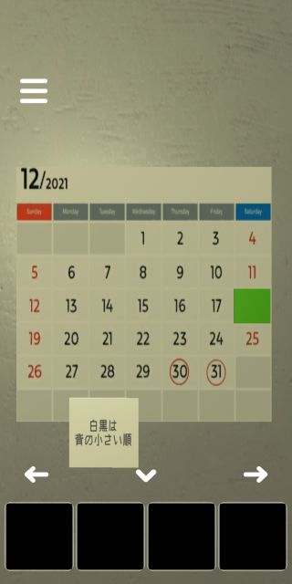 右の壁のカレンダーを拡大して、緑の部分の日付が『2021年12月18日』なのを確認。