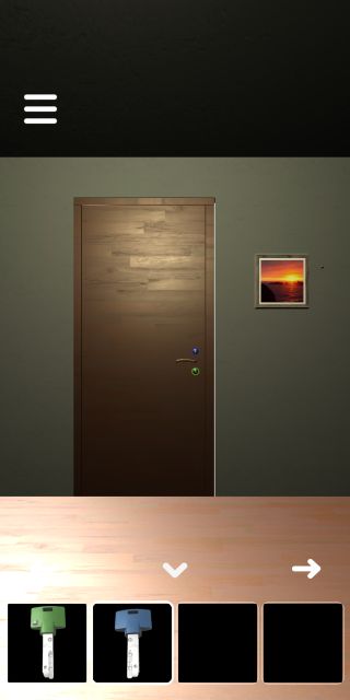 扉に「緑の鍵」と「青い鍵」を使って、脱出。