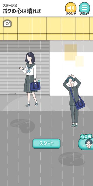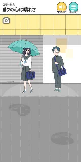 シゲキ回避 -脱出ゲーム 無料 4.6 評価する 送信する GLOBAL GEAR, K.K. ステージ8 ボクの心は晴れさ 主人公から「傘」を入手。 女の子のカバンに「傘」を入れて、『スタート』を押す。 ステージ1 風のイタズラ ステージ2 女子との会話 ステージ3 例の本 ステージ4 母との買い物 ステージ5 気まずいテレビ ステージ6 教科書忘れちゃった ステージ7 シゲキラン ステージ8 ボクの心は晴れさ ステージ9 ねっチュウしょう ステージ10 シゲキ的なプール ステージ11 シゲキと海と太陽と ステージ12 突然の呼び出し ステージ13 男のサガ ステージ14 脳内ヒーロー ステージ15 君のぬくもり ステージ16 シゲキ的な表紙 ステージ17 二人三脚+1 ステージ18 ブラックは大人の味 ステージ19 話すキッカケ ステージ20 お化け屋敷 ステージ21 シークレットミッション ステージ22 シゲキラン2 ステージ23 緊張の修学旅行 ステージ24 女子部屋への道 ステージ25 お土産選び ステージ26 手紙の返事は ステージ27 何着ていこう? ステージ28 バレンタインデー ステージ29 ボタンの行方 ステージ30 大人になっても カード図鑑 No.001~010 No.011~020 No.021~030 No.031~040 No.041~050 No.051~060 No.061~070 No.071~080 No.081~090 No.091~100 No.101~110 No.111~115