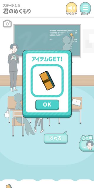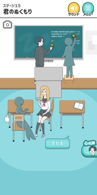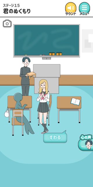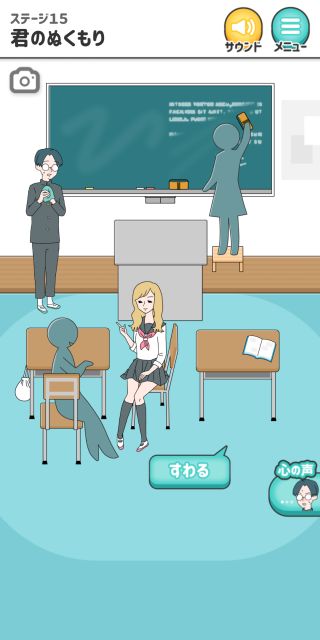 シゲキ回避 -脱出ゲーム 無料 4.6 評価する 送信する GLOBAL GEAR, K.K. ステージ15 君のぬくもり 黒板から「黒板消し」を入手。 主人公に「黒板消し」を渡す。 「踏み台」を入手して、女の子に使う。 『すわる』を押す。 ステージ1 風のイタズラ ステージ2 女子との会話 ステージ3 例の本 ステージ4 母との買い物 ステージ5 気まずいテレビ ステージ6 教科書忘れちゃった ステージ7 シゲキラン ステージ8 ボクの心は晴れさ ステージ9 ねっチュウしょう ステージ10 シゲキ的なプール ステージ11 シゲキと海と太陽と ステージ12 突然の呼び出し ステージ13 男のサガ ステージ14 脳内ヒーロー ステージ15 君のぬくもり ステージ16 シゲキ的な表紙 ステージ17 二人三脚+1 ステージ18 ブラックは大人の味 ステージ19 話すキッカケ ステージ20 お化け屋敷 ステージ21 シークレットミッション ステージ22 シゲキラン2 ステージ23 緊張の修学旅行 ステージ24 女子部屋への道 ステージ25 お土産選び ステージ26 手紙の返事は ステージ27 何着ていこう? ステージ28 バレンタインデー ステージ29 ボタンの行方 ステージ30 大人になっても カード図鑑 No.001~010 No.011~020 No.021~030 No.031~040 No.041~050 No.051~060 No.061~070 No.071~080 No.081~090 No.091~100 No.101~110 No.111~115