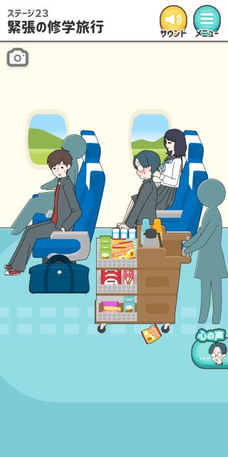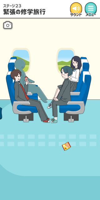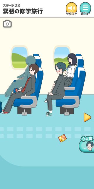 シゲキ回避 -脱出ゲーム 無料 4.6 評価する 送信する GLOBAL GEAR, K.K. ステージ23 緊張の修学旅行 右に移動。 ドアを開ける。 左の座席の下のレバーを押す。 ステージ1 風のイタズラ ステージ2 女子との会話 ステージ3 例の本 ステージ4 母との買い物 ステージ5 気まずいテレビ ステージ6 教科書忘れちゃった ステージ7 シゲキラン ステージ8 ボクの心は晴れさ ステージ9 ねっチュウしょう ステージ10 シゲキ的なプール ステージ11 シゲキと海と太陽と ステージ12 突然の呼び出し ステージ13 男のサガ ステージ14 脳内ヒーロー ステージ15 君のぬくもり ステージ16 シゲキ的な表紙 ステージ17 二人三脚+1 ステージ18 ブラックは大人の味 ステージ19 話すキッカケ ステージ20 お化け屋敷 ステージ21 シークレットミッション ステージ22 シゲキラン2 ステージ23 緊張の修学旅行 ステージ24 女子部屋への道 ステージ25 お土産選び ステージ26 手紙の返事は ステージ27 何着ていこう? ステージ28 バレンタインデー ステージ29 ボタンの行方 ステージ30 大人になっても カード図鑑 No.001~010 No.011~020 No.021~030 No.031~040 No.041~050 No.051~060 No.061~070 No.071~080 No.081~090 No.091~100 No.101~110 No.111~115