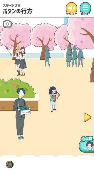 シゲキ回避 -脱出ゲーム 無料 4.6 評価する 送信する GLOBAL GEAR, K.K. ステージ29 ボタンの行方 主人公から「ボタン」を入手。 茂みに隠れている女の子を出して、話しかける。 「ボタン」を使う。 ステージ1 風のイタズラ ステージ2 女子との会話 ステージ3 例の本 ステージ4 母との買い物 ステージ5 気まずいテレビ ステージ6 教科書忘れちゃった ステージ7 シゲキラン ステージ8 ボクの心は晴れさ ステージ9 ねっチュウしょう ステージ10 シゲキ的なプール ステージ11 シゲキと海と太陽と ステージ12 突然の呼び出し ステージ13 男のサガ ステージ14 脳内ヒーロー ステージ15 君のぬくもり ステージ16 シゲキ的な表紙 ステージ17 二人三脚+1 ステージ18 ブラックは大人の味 ステージ19 話すキッカケ ステージ20 お化け屋敷 ステージ21 シークレットミッション ステージ22 シゲキラン2 ステージ23 緊張の修学旅行 ステージ24 女子部屋への道 ステージ25 お土産選び ステージ26 手紙の返事は ステージ27 何着ていこう? ステージ28 バレンタインデー ステージ29 ボタンの行方 ステージ30 大人になっても カード図鑑 No.001~010 No.011~020 No.021~030 No.031~040 No.041~050 No.051~060 No.061~070 No.071~080 No.081~090 No.091~100 No.101~110 No.111~115