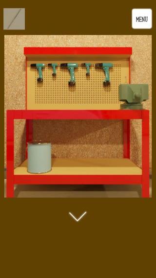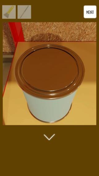 右の棚のペンキ缶を拡大。