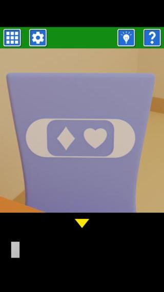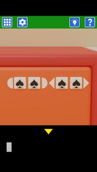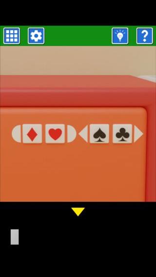 左右の椅子を調べて、枠の形とトランプのスートを確認。
