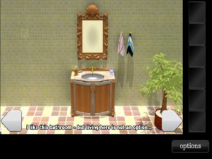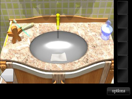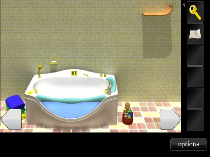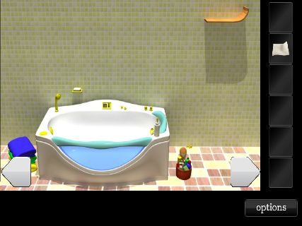 Quick Escape - Bathroom 無料 0 評価する 送信する 攻略その1 洗面台の前からスタート。 洗面台から「布」を入手。 左に移動して、右上の棚を拡大。 本体を傾けて鍵を落とす。 落ちた「鍵」を入手。 左下のタオルの色を確認しておく。 左に移動して、左下の床を拡大。 タオルの色『青、緑、黄』に合わせて、「鍵」を入手。 トイレを拡大。 トイレの後ろから「洗剤」を入手して、「布」と組み合わせる。 壁のパズルを拡大。 パズルを回転させて解いて、「鍵」を入手。 攻略その1 攻略その2