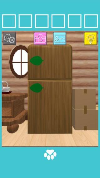 右の冷蔵庫を拡大して、上の扉に「葉っぱのボタン」を取り付ける。