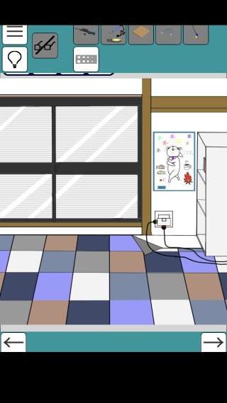 コンセントに左下のカーペットをめくって、「たこ足コンセント」を入手。