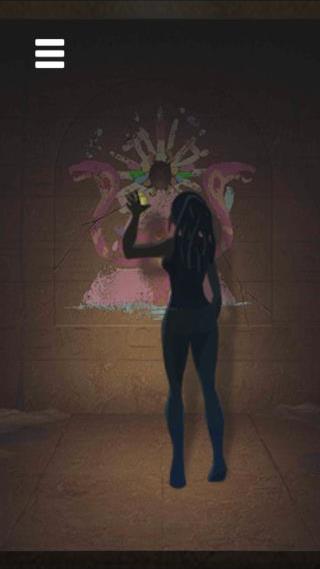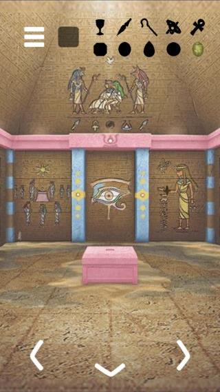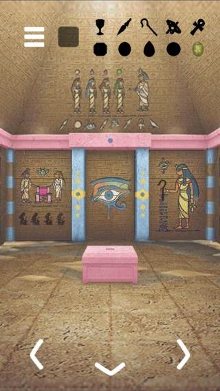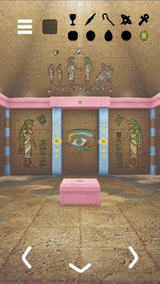 左に移動して、正面の扉のホルスの目の色と、扉の上の宝石の組み合わせを確認。