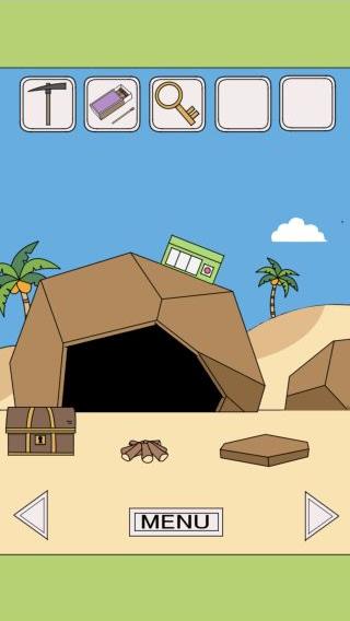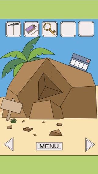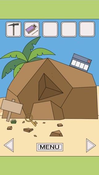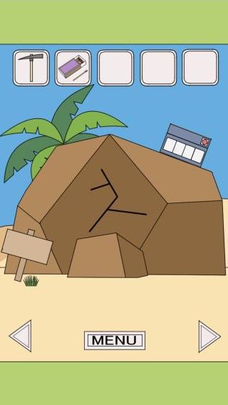 左に移動して、岩のヒビ割れに「つるはし」を使う。