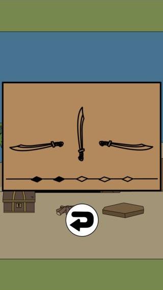 岩の上の箱を拡大して、剣の向きを上下逆にして『左下右』に合わせる。