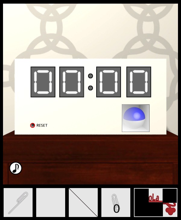 戻って再びデジタル時計を拡大して、穴に「伸ばしたゼムクリップ」を使う。