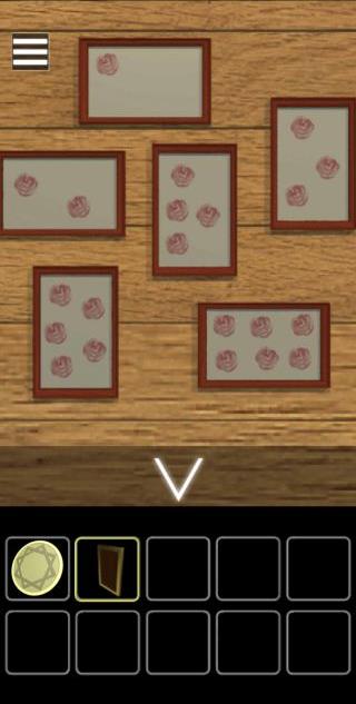 壁の額を拡大して、花の数の順で『横横縦縦縦横』なのを確認。