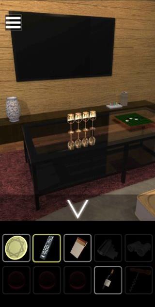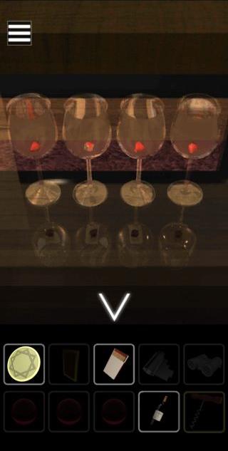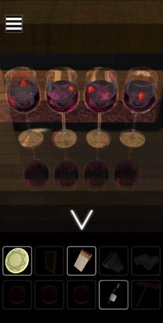 テーブルの上のグラスを拡大して、「ワイン」を注ぐ。