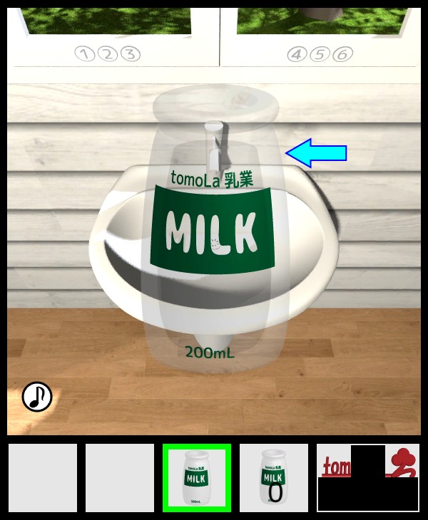 2本の「牛乳ビン」を入手して、最初の部屋に戻って反対側に移動。