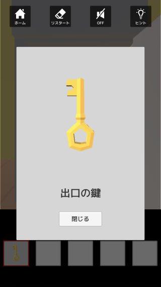 「出口の鍵」を入手して、扉を拡大して使って脱出。
