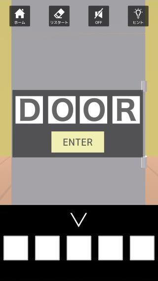 看板を拡大して、4つの数字の色と同じ文字で、数字の位置の文字を抜き出すと『DOOR』となる。