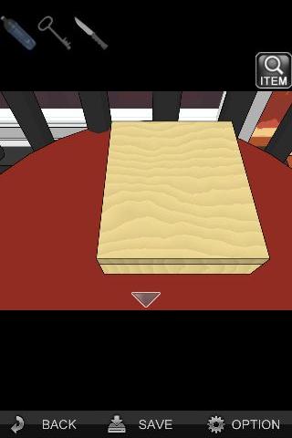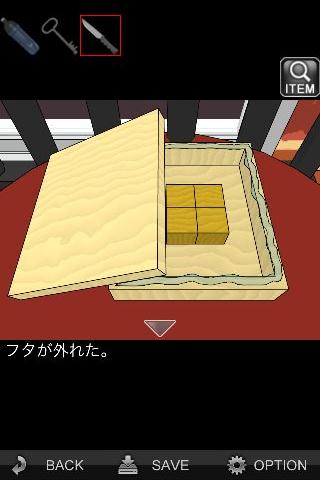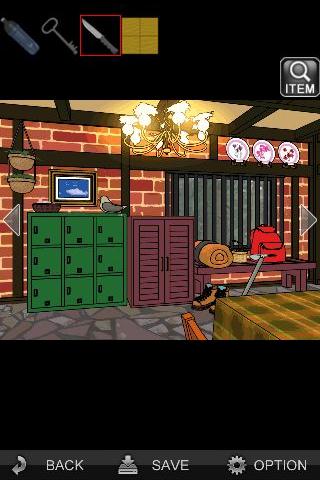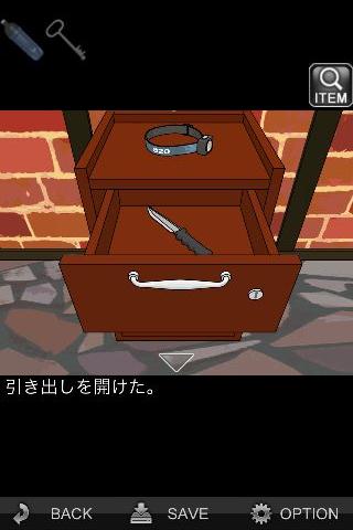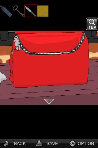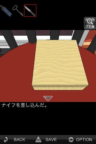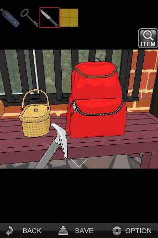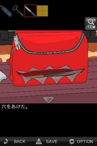 赤いリュックに「ナイフ」を使って穴を開ける。