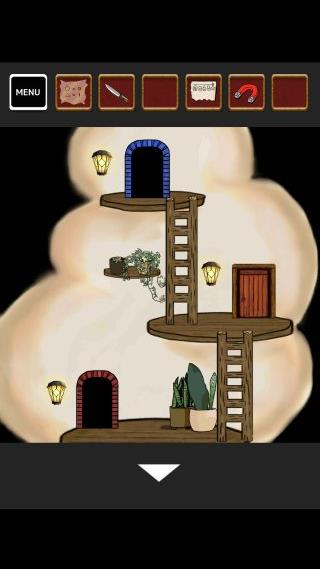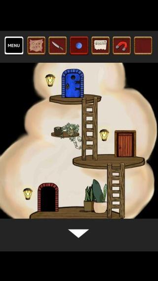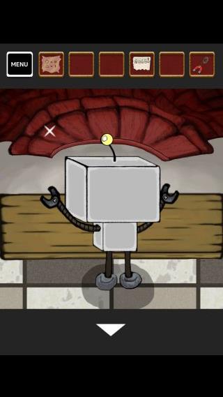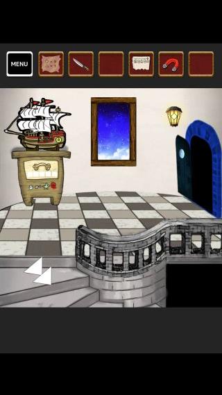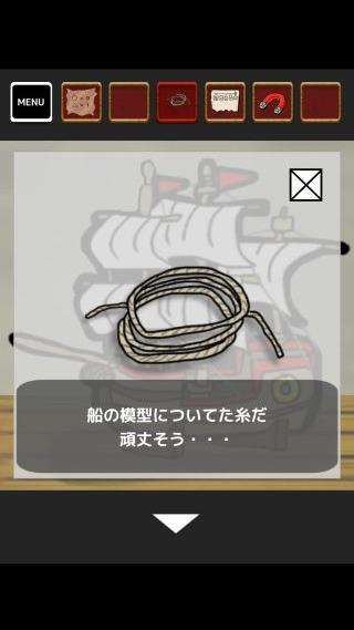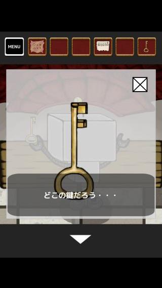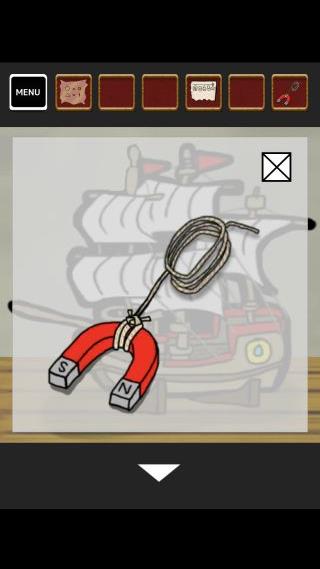 左上の光っている場所に「糸付き磁石」を使って、「鍵」を入手。