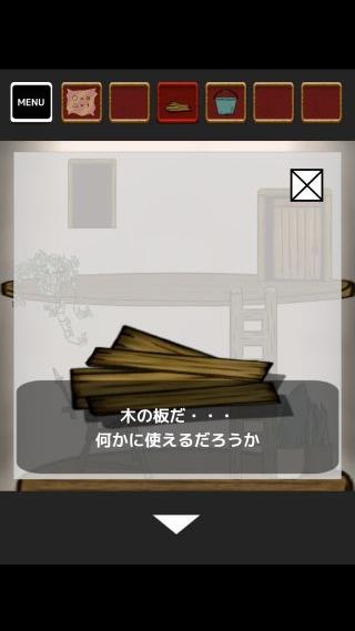 右上の扉に「バール」を使って、「木の板」を入手。