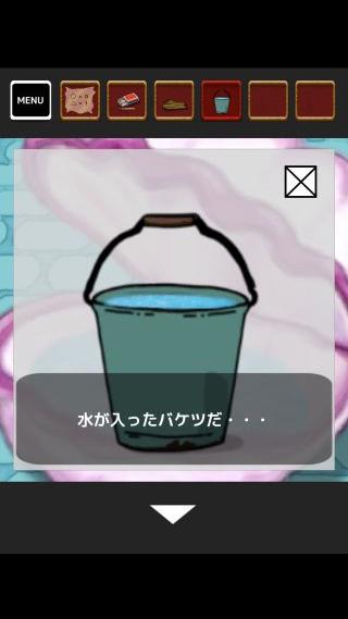 「バケツ」に水を入れて、部屋に戻って反対側に移動。