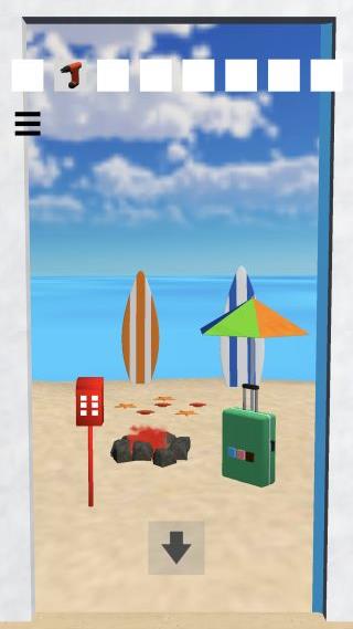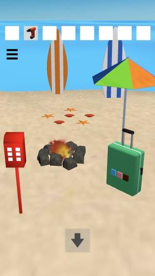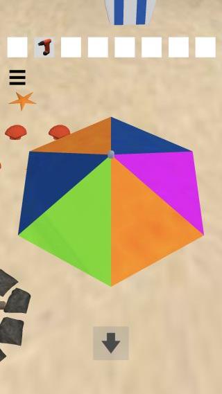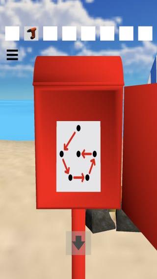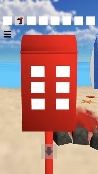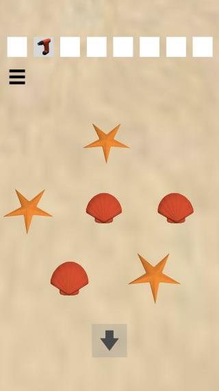 奥の砂浜を拡大して、矢印の順で『ヒトデ、ヒトデ、貝、ヒトデ、貝、貝』を確認。