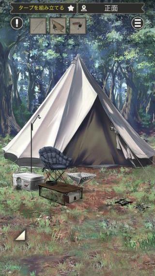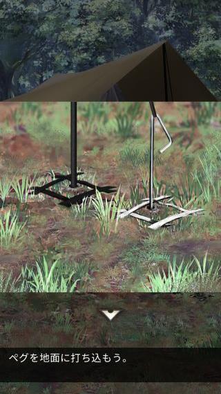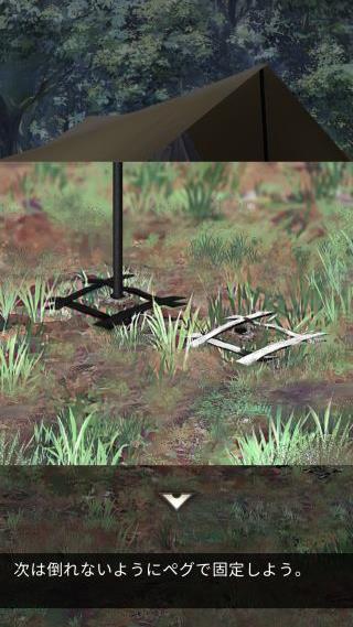 「タープとポール」を左にセットして、右に「ペグ」を使う。