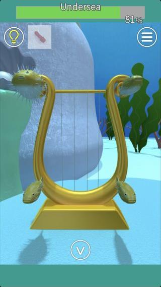 ハープを拡大して、左から『白赤黒青』に対応しているので『白赤赤黒赤青』の順で弾く。