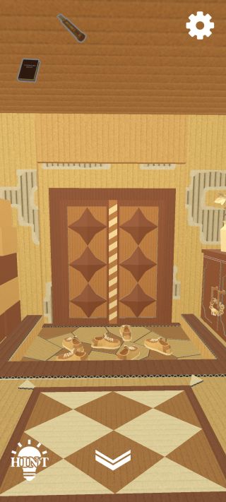 廊下の奥に移動して、正面の扉に「カッター」を使って開ける。