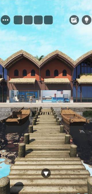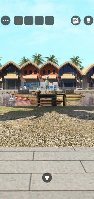 右奥の桟橋の前へ。