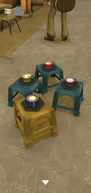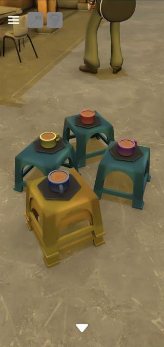 「カップ」のミルクを入れて、4つを調べて色と図形を確認。