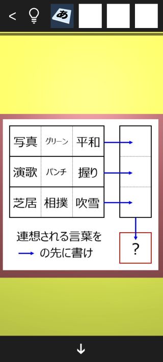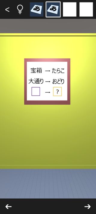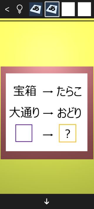 紫の枠は『かたたたき』なので、『黄=かたき』となる。