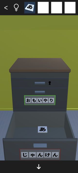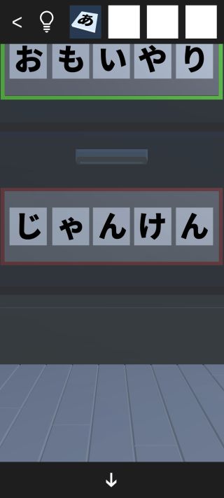 上から『ピース、拳、紙』が当てはまり、それぞれは『じゃんけん』を表している。