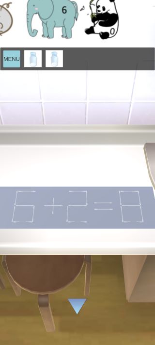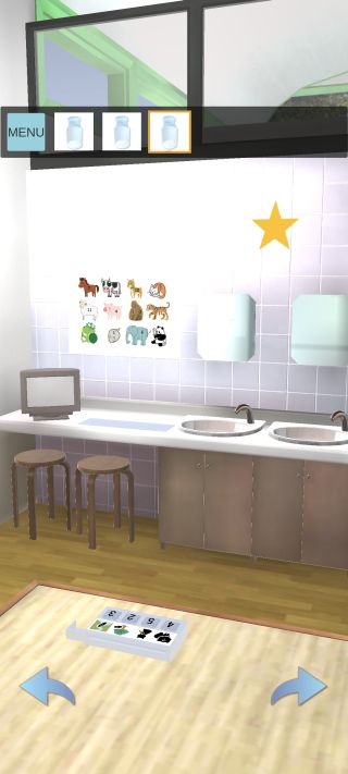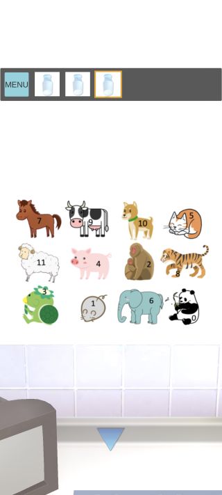 下のケースを拡大して、張り紙の動物の位置に対応した絵の描かれた3つの「ビン」を入れる。