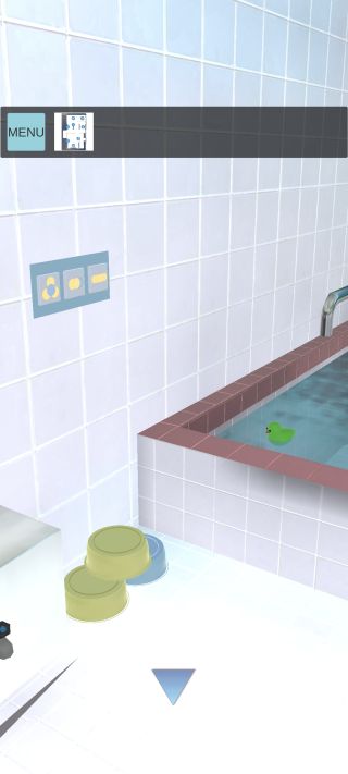 一番左の浴槽の緑のアヒルを確認。