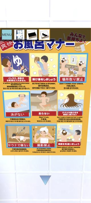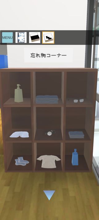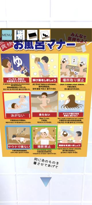 脱衣所の棚を拡大して、先ほどのお風呂マナーの張り紙の枠の色を置かれている物に当てはめる。