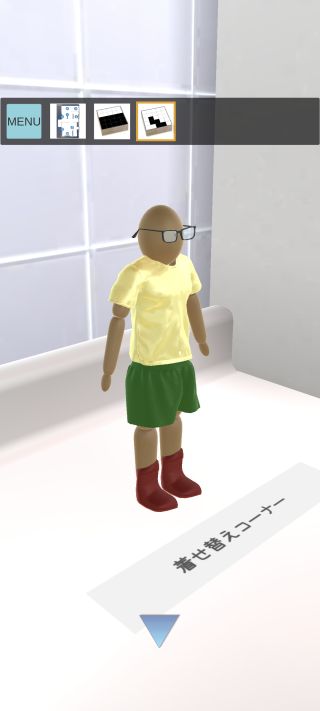 『メガネ=黄、シャツ=緑、パンツ=赤、靴下=青』に合わせる。