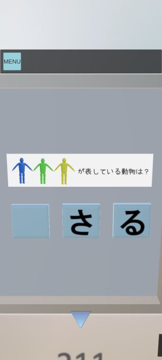 青い人形が『見ざる』、緑の人形が『言わざる』なのを確認。