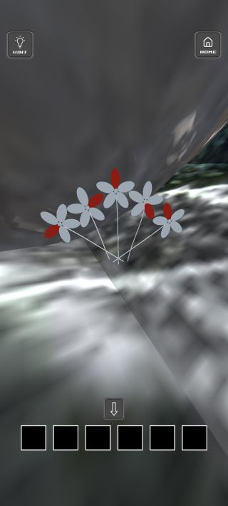 花を拡大して、赤い花びらが茎を下にして『左上、右上、上、右下、左上』なのを確認。