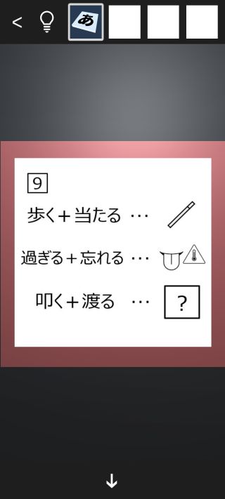 ことわざを表していて『犬も歩けば棒に当たる、喉元過ぎれば熱さを忘れる、石橋を叩いて渡る』となる。