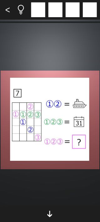 右の2つの絵は『ふね、ひにち』を表していて、左の表は50音表となる。