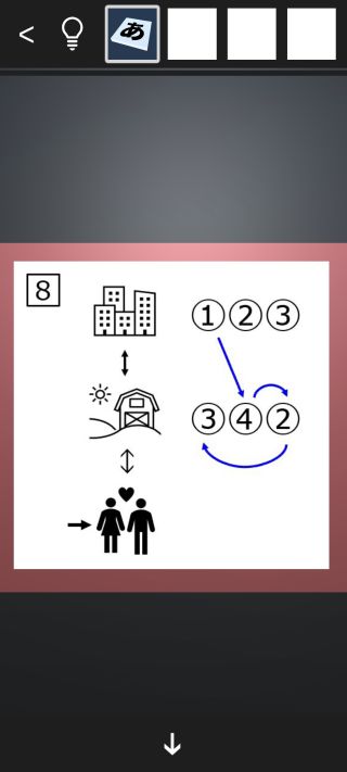 上から『とかい、いなか』を表していて、数字の順で『となかい』となる。