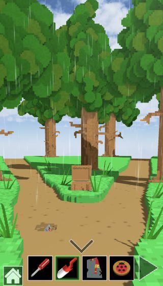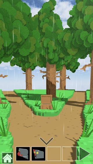 雨の分岐に移動して、左下の地面で4つの『>、<』が順に表示されるのを確認。