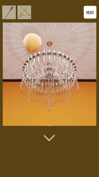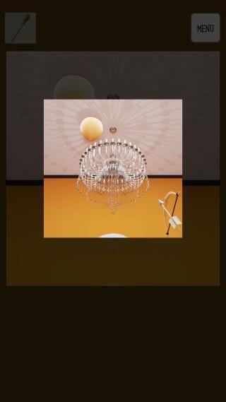 ホールに戻って反対側に移動して、上のシャンデリアを拡大。