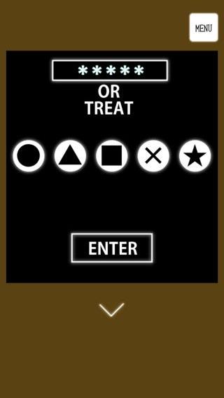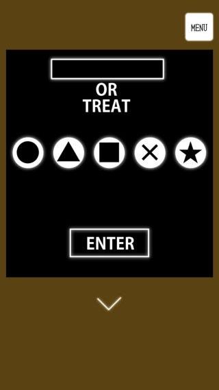 5つのジャックオーランタンのアルファベットを『TRICK』の順となるように、『■★●▲×』の順で押す。