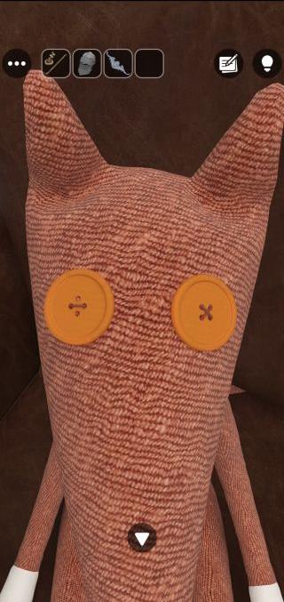 ぬいぐるみを拡大して、目のボタンの色と『-×』を確認。