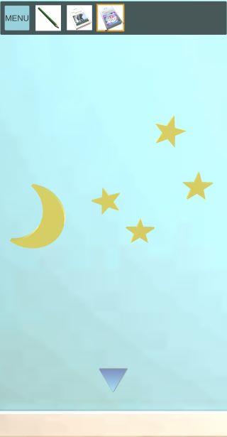 壁の月と星を拡大して、『月、左星、右星、下星、上星』の順で押す。