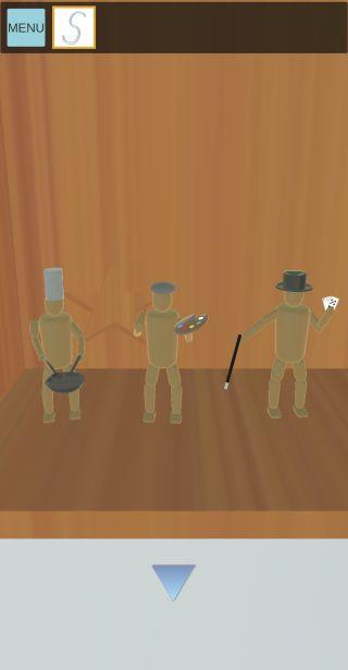 右のティッシュケースを拡大して、「マジシャン人形」「画家人形」「コック人形」の順でセットする。